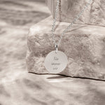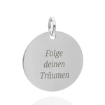 Schlichte Eleganz mit persönlicher Note! Unser runder Anhänger aus 925 Sterling Silber ist individuell gravierbar, drei Zeilen Text.